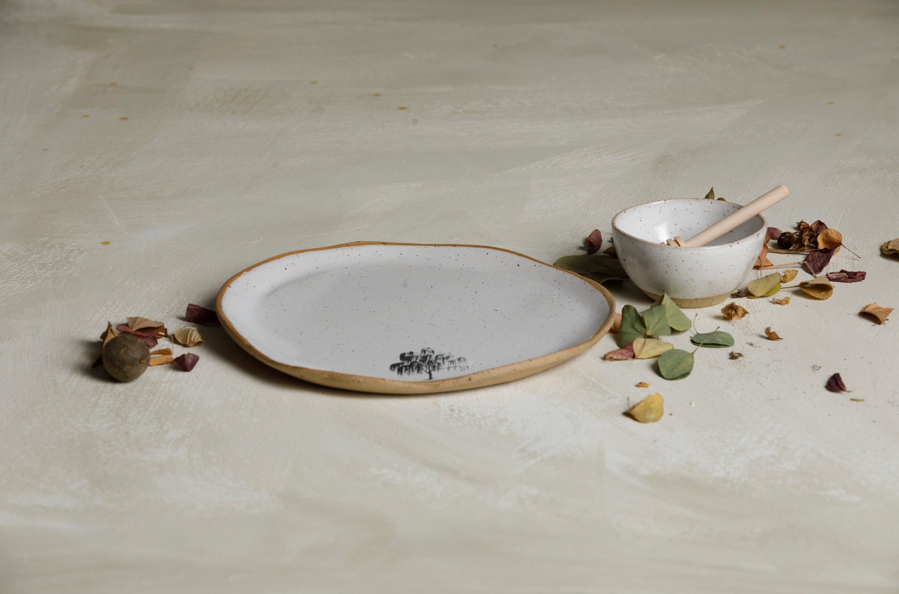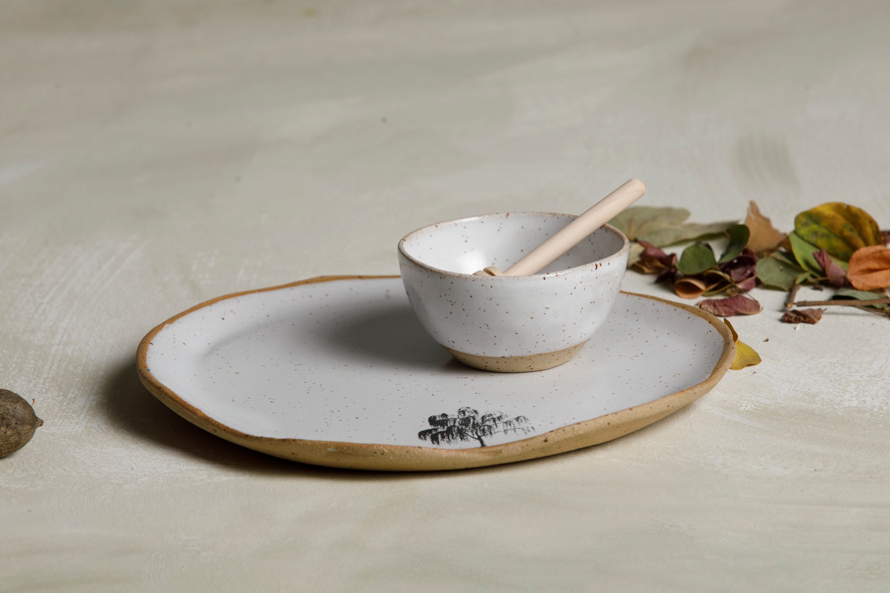 סט צלחת הגשה וקערה תואמת, בעבודת יד. אידיאלי להגשת מאכלים שונים, נשנושים, צ'יפס, גבינות, סושי ועוד.